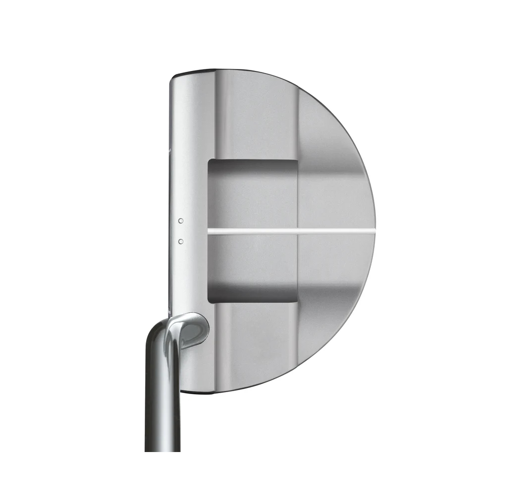 Denna eleganta mallet har en djup, tredelad bakre hålrum med den längsta siktlinjen av alla Neo Classic-modeller. Överkanten är tunnare bakom bollen och över hålet, vilket ger ER8 en mer elegant presentation vid adress. Den mjuka bakre sektionen gör att ögonen kan se den bladliknande mittsektionen och den långa siktlinjen för att främja de dubbla riktlinjefunktionerna för både lodrätt och parallell justering. Den enkla böjen monterad direkt i huvudet möjliggör en liten tåpendel för att främja en mer rak och genomgående puttingstroke.