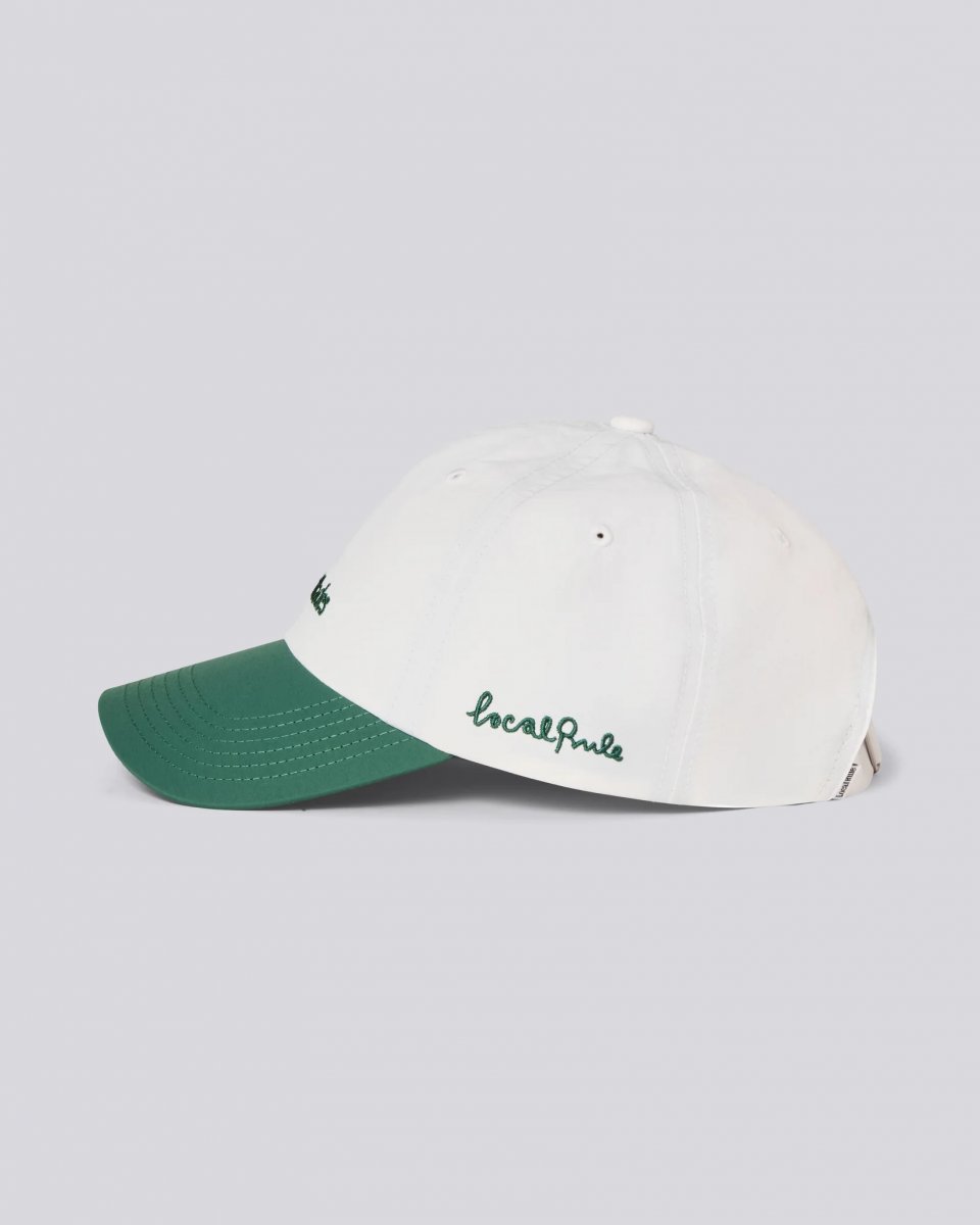 Local Rule Nylon Cap erbjuder en avslappnad, ostrukturerad "dad-cap"-stil med en elegant skrynklig look. Tillverkad av högdensitets, vattenavvisande italiensk nylon, perfekt för alla väder. Justerbar och lätt, ger den en bomullsliknande känsla för ultimat komfort..